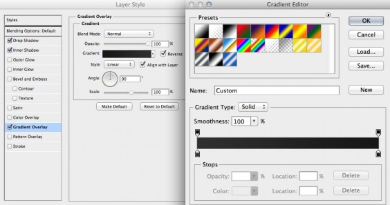 As for the Layer Styles of this layer, we’re going to keep it simple. A Gradient Overlay. The settings are below.