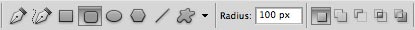 The first shape we’ll create will the be mic ‘stand’. Start off my grabbing your Rounded Rectangle Tool from the Tools on the left, and set the Radius to 100px on the Options Bar at the top of your workspace. This will ensure we’re left with nice rounded corners. Draw out a shape in the middle of the document, like the one below.